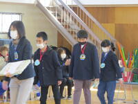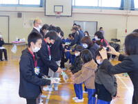 1,2年生は、3年生一人一人に感謝の気持ちを伝え、プレゼントを贈呈しました。
