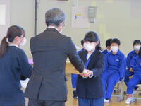 教頭から、卒業記念品が渡されました。