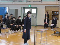 校長より、「3年生は、勉強や行事でリーダーとして活躍し、後輩の良き手本となってくれたこと、高等部に進学してからも頑張ってほしいこと」について、話がありました。