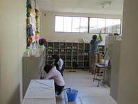 長い間、大切に使ってきた体育館をきれいにして、明日の高等部卒業生の門出を祝いたいと思います。