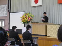 在校生代表が開会のことばを述べました。