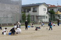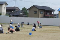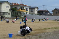子どもたちが体育の時間や遊びの時間に使っている、運動場の石拾いをしていただきました。