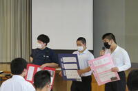 進路指導主事から、「現場実習では『素直』『健康』『安全』を意識して活動することができましたね。」との話がありました。これからも、この3つの言葉を意識しながら学校生活を送ってほしいと思います。