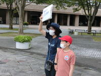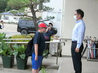 職員玄関前で、代表児童が「いってきます」とあいさつをしました。