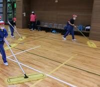体育館使用後は、みんなでモップがけをしてきれいに掃除しました。