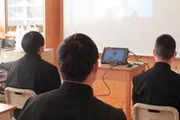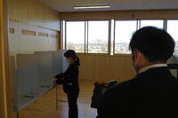 新型コロナウイルス感染症拡大防止対策として、集会での立会演説会ではなく、タブレット端末によるWeb会議方式で行いました。