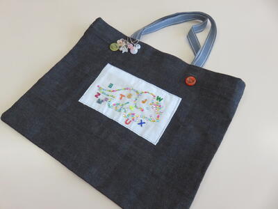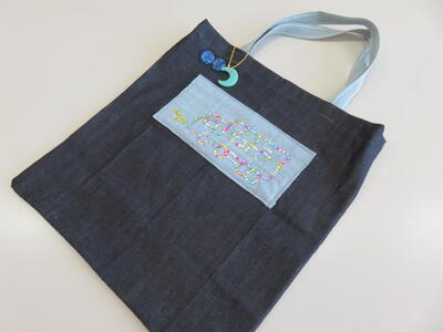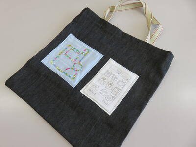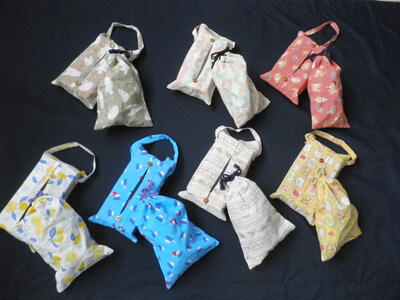 高等部2年1組 「一枚の手ぬぐいから BOXティッシュケースと巾着の2つの小物」