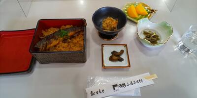 昼食は、イワナ丸ごとの炊き込みご飯と郷土料理「ひっつみ汁」をおいしくいただきました。