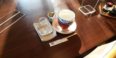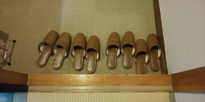 食べ終わった後のテーブル、部屋のスリッパがきれいに整えられていました。