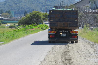 さらに、大型トラックで砕石を踏み固めていただきました。
