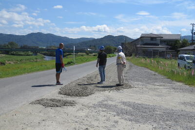 9月22日(水)に、本校北側道路沿い駐車場の凹みを、砕石を入れて補修しました。