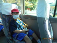 十六沼公園へは、バスで移動しました。車内では、座席の間隔を空け、シートベルトをして、安全に乗車しました。