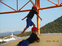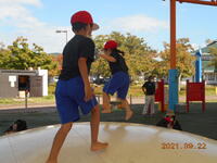 級友と一緒に、仲良く、公園の遊具で元気に遊びました。