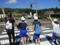 登下校の際には、児童生徒と保護者がこの道路を横断しますので、歩行者優先にて、車は停車していただきますよう、ご協力をよろしくお願いします。