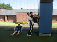 補修にあたっては、旧校舎解体業者様の好意により、重機を使っての作業の協力をいただきました。
