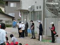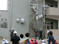 教師の指導のもと、新校舎の避難経路を確認しながら、安全に避難しました。