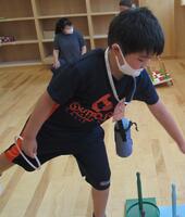 好奇心旺盛な子どもたちは、押したり引っ張ったりして、急にブザーが鳴って、びっくりしていました。