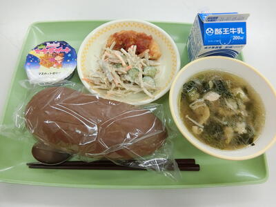 今日の給食は、「だいすきふくしまの日『七夕献立』~地場産物を食べて応援しよう~」として、伊達鶏のささみトマトソース、ごぼうサラダ、七夕スープ、七夕マスカットゼリーでした。