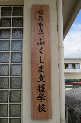 新校舎・ものづくり棟の改築工事(建築)の竣工記念として、「福島市立ふくしま支援学校」と記された木製看板をご寄付いただきました。