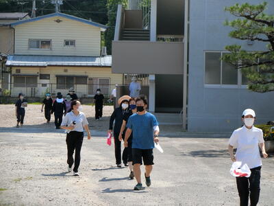 児童・生徒下校後の14:40より、2学期からの新校舎使用開始に向けて、教職員全員で避難訓練を行いました。