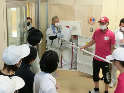 次に、屋内消火栓の使用方法を全員で確認しました。