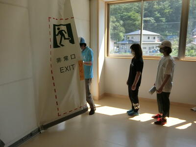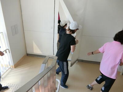 避難訓練では、ものづくり棟から出火したことを想定して、学級担任が自分の教室から、非常階段等を使って避難しました。