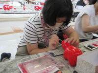 日新館では、赤べこ絵付け体験をしました。世界に一つだけの赤べこを作ることができてうれしそうでした。