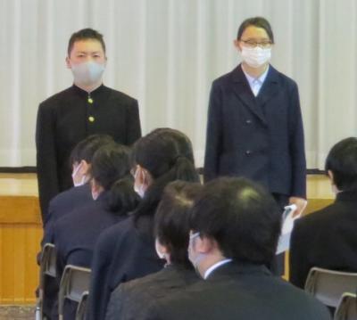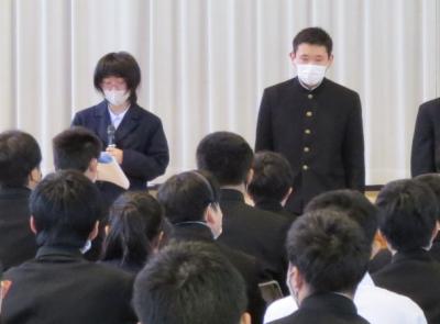 3年生は、学級ごと前に出て、現場実習に向けての決意や意気込みを一人ずつ発表しました。