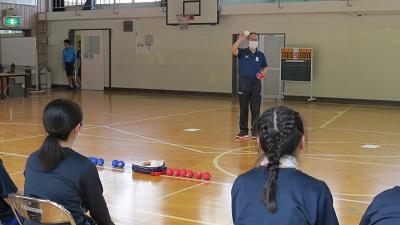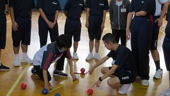 國分章夫(こくぶん あきお)先生をお招きして、「ボッチャ体験教室」を行いました。