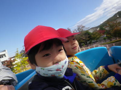 10月30日(金) 気持ちのいい秋晴れのもと、1~5年生は路線バスに乗って、
