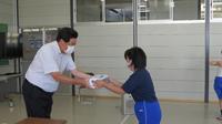 福島市では、令和2年度児童福祉月間事業の一つとして、児童公園への招待やプレゼントの贈呈を実施してくださっております。今年度、福島養護学校では、小学部がプレゼントをいただきました。今年度、市長様の訪問は残念ながらありませんでしたが、市長様の代わりに、校長先生からプレゼントの贈呈をしていただきました。