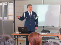 講演では、最近の交通事故の状況や注意点などを、グラフ資料や生々しい現場の写真などを使って、わかりやすく教えてくださいました。また、横断歩道における歩行者等の優先にかかわることや、携帯電話のながら運転について12月から6点の減点、罰金が現行の3倍になるということも詳しく教えていただきました。さらに、振り込め詐欺の手口についての説明もしてくださいました。