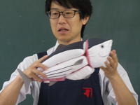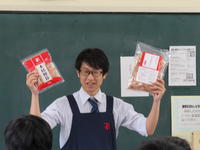 講師として、株式会社にんべんより、尾形様に来ていただき、かつお節ができるまでの話やかつお節の削り方、だしのとり方まで教えていただきました。