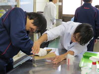 12月11日(水) 高等部2年生は食育の授業がありました。今回は、オリパラ教育の関連で、ホストタウンとしてお迎えするスイスのことを知るために、スイスの代表的な料理を作ってみようというということで、ベルーナブラッテ、アルペンマカロニ、ロールパン、チョコクリーム、オレンジゼリーなど、みんなで力を合わせて調理実習に取り組みました。