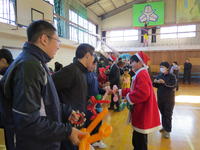 校長先生のお話の後は、福島市総合文化祭に出品した児童に表彰状の伝達がありました。小学部一年生がとっても上手に賞状をいただき、礼をすることが出来ました。そして、表彰の後は、2学期の思い出発表やお楽しみコンサートがありました。一人一人、サンタさんから風船のプレゼントをいただきました。みんなで楽しい時間を過ごすことができました。