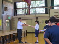 全校集会では、高等部の作業技能大会の表彰と夏休みの思い出発表がありました。