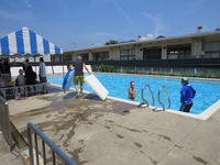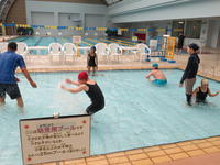 1日目は、二本松市民プールでの活動です。開設して3年目の新しい施設へ、新車のバスで移動でした。流れるプールやウォータースライダーなどで子供たちもいろいろなプールで楽しく活動できました。