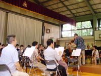 オープニングから、ヒット曲「USA…」の曲を演奏していただき、子供たちはいきなりダンスで盛り上がりました。また、楽器と触れ合う場も設定していただき、子供たち一人一人に楽器を目の前で見せていただいたり演奏してくださったりして、子供たちも大喜びでした。