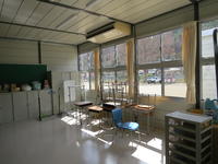 小学部では、新しい仮説校舎での勉強がはじまりました。今週から一年生も給食が始まり、準備や後片付けなど、先生と一緒にがんばっていました。