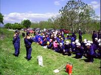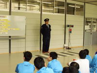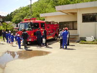 訓練の後は、消防車の見学がありました。お忙しいところ訓練の指導をしていただいたり、消防車の説明をしてくださった、