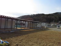 仮設校舎の建物が出来、校舎をつなぐ通路もできてきました。