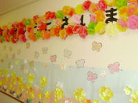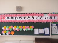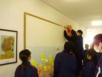 高等部では、在校生が、卒業する先輩に対して、感謝の気持ちを伝えるメッセージコーナーがありました。大きなメッセージも間もなく完成です。