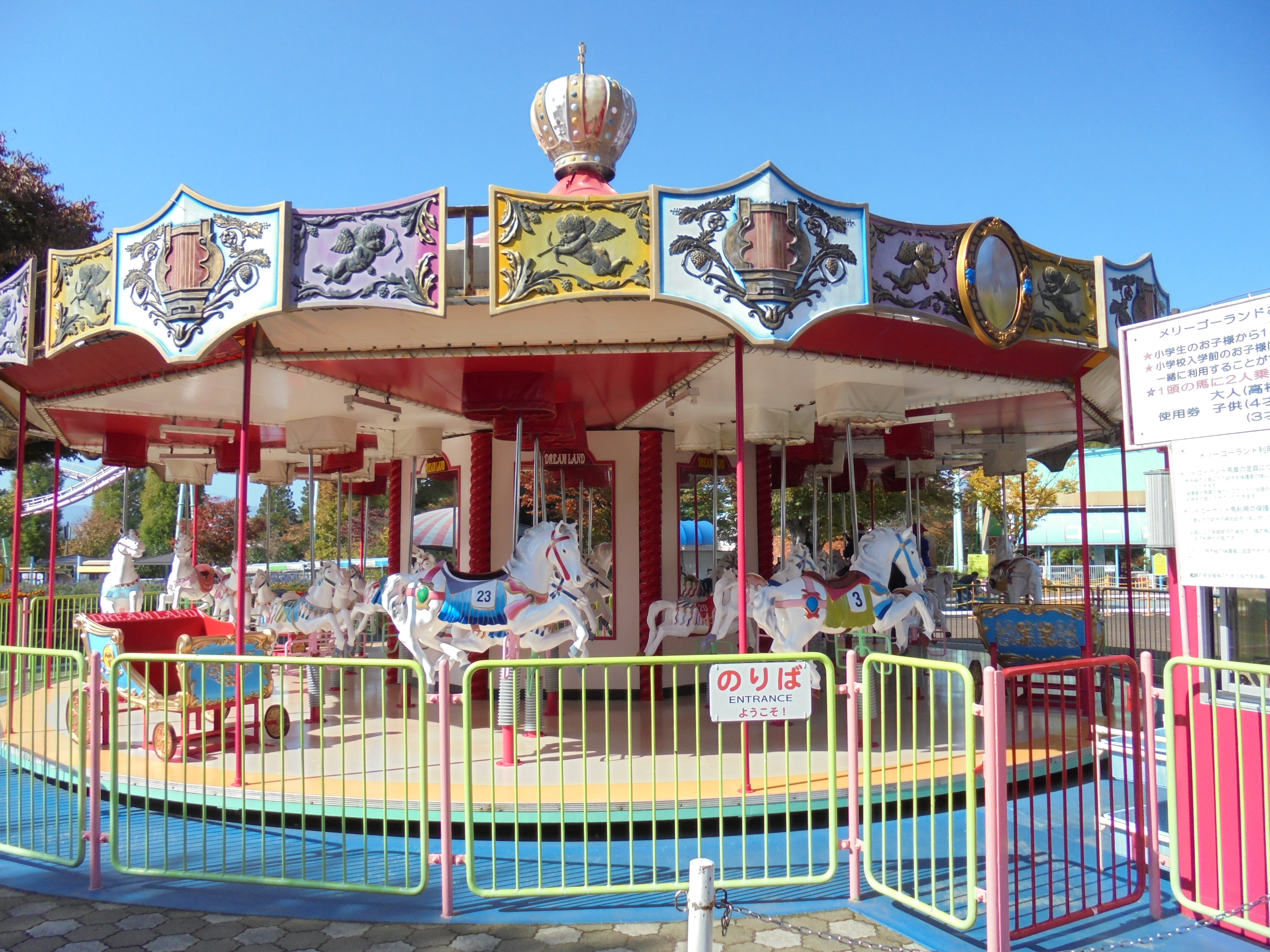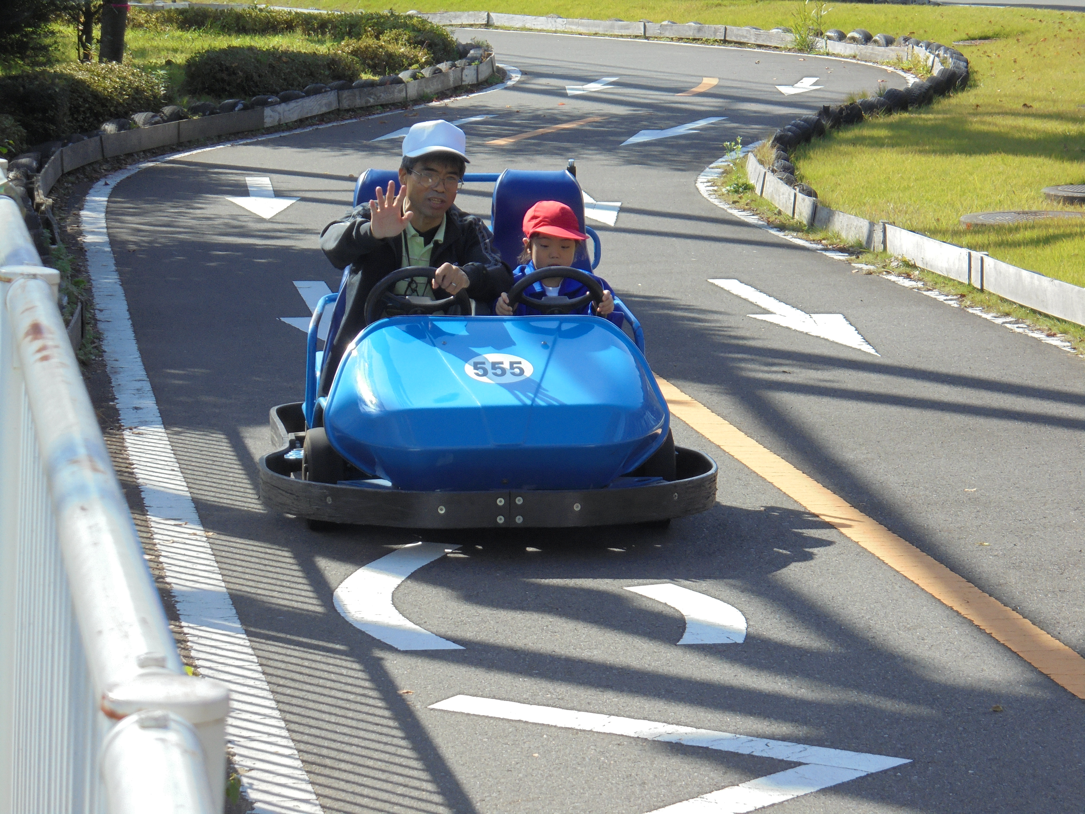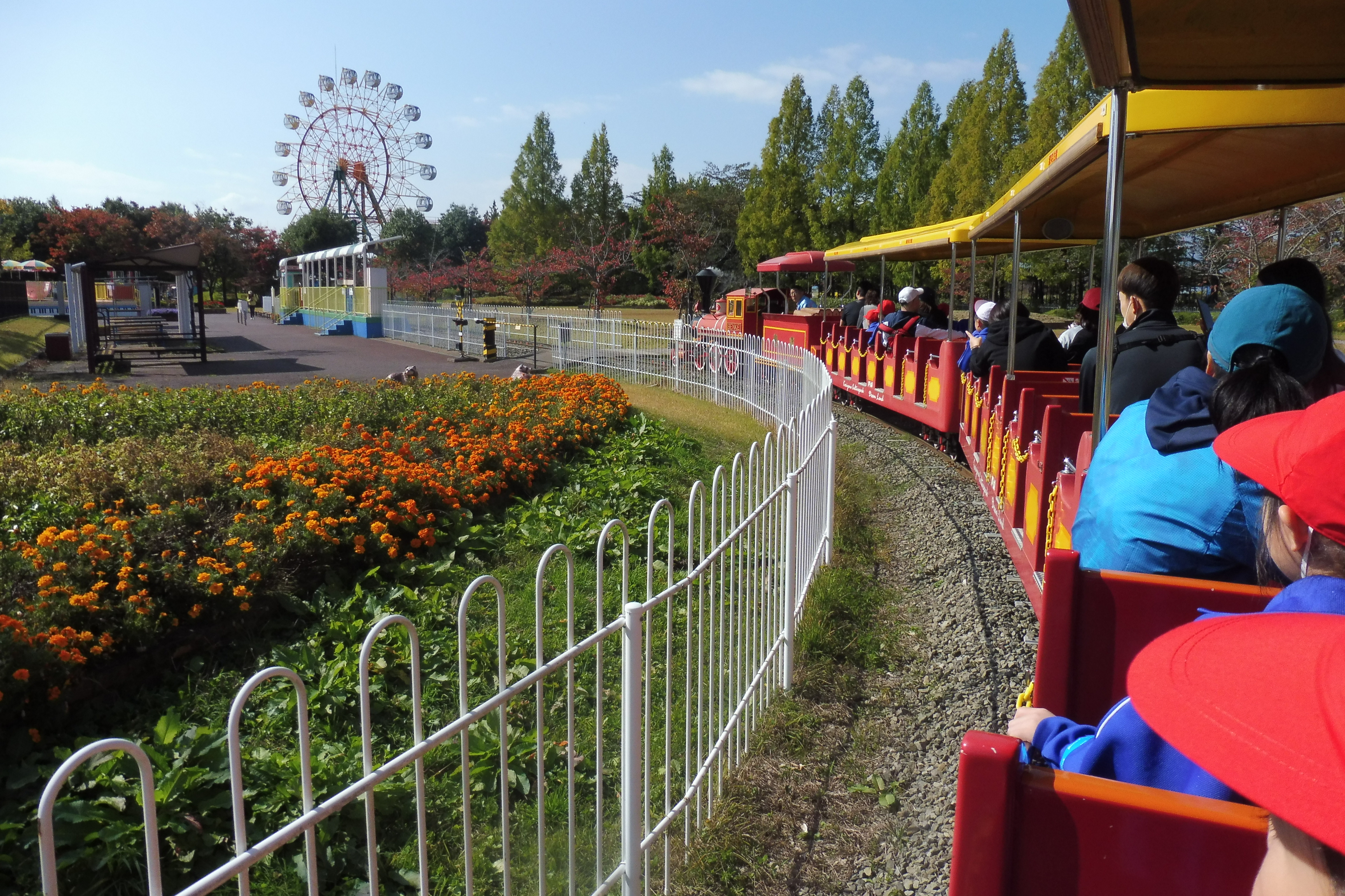 子供たちは、友達や先生と一緒に楽しい乗り物にたくさん乗って楽しい時間をすごすことができました。メリーゴーランドやコーヒーカップ、ゴーカートでは、自分でハンドルを動かして運転手になった気分を楽しみました。