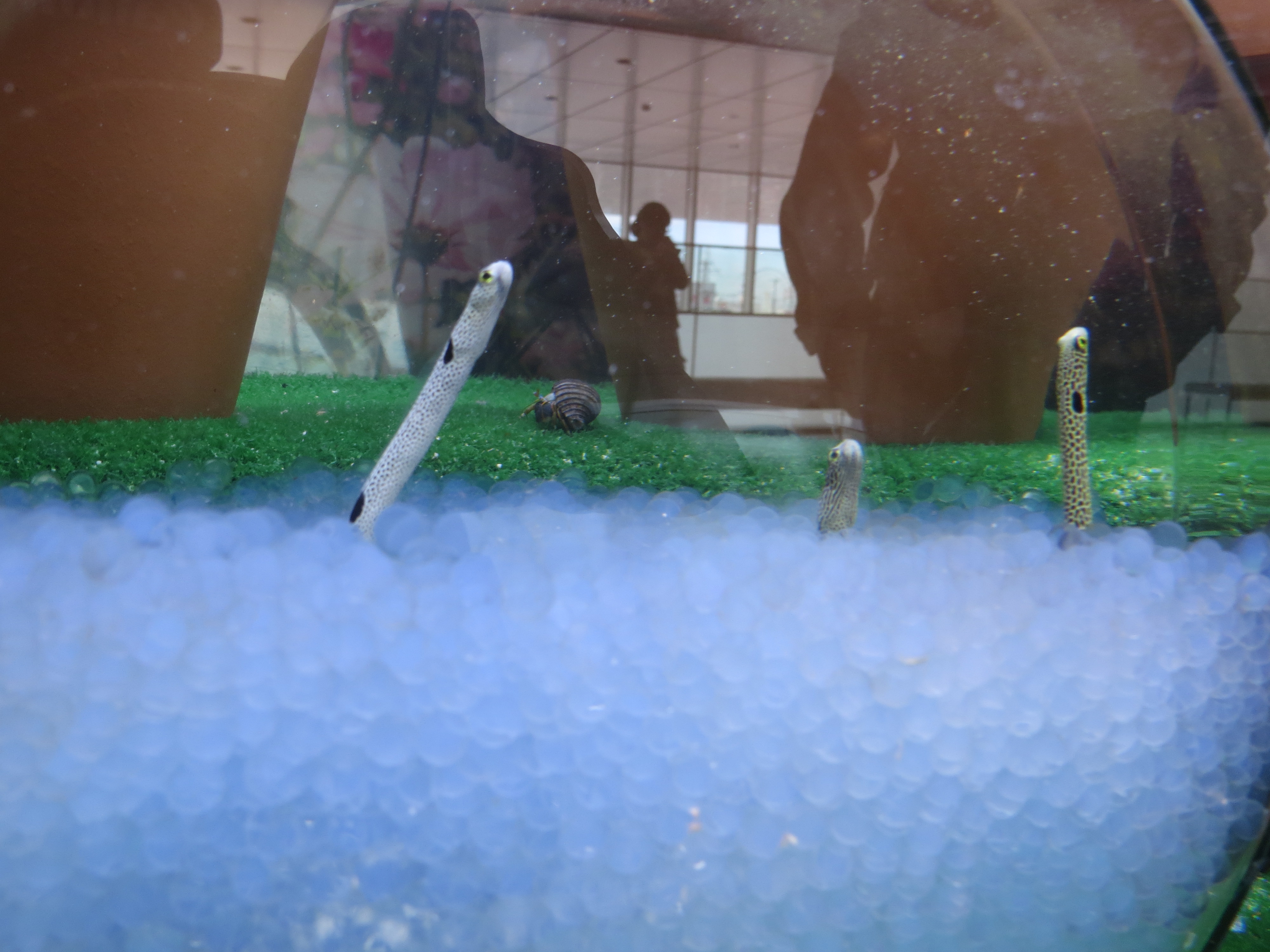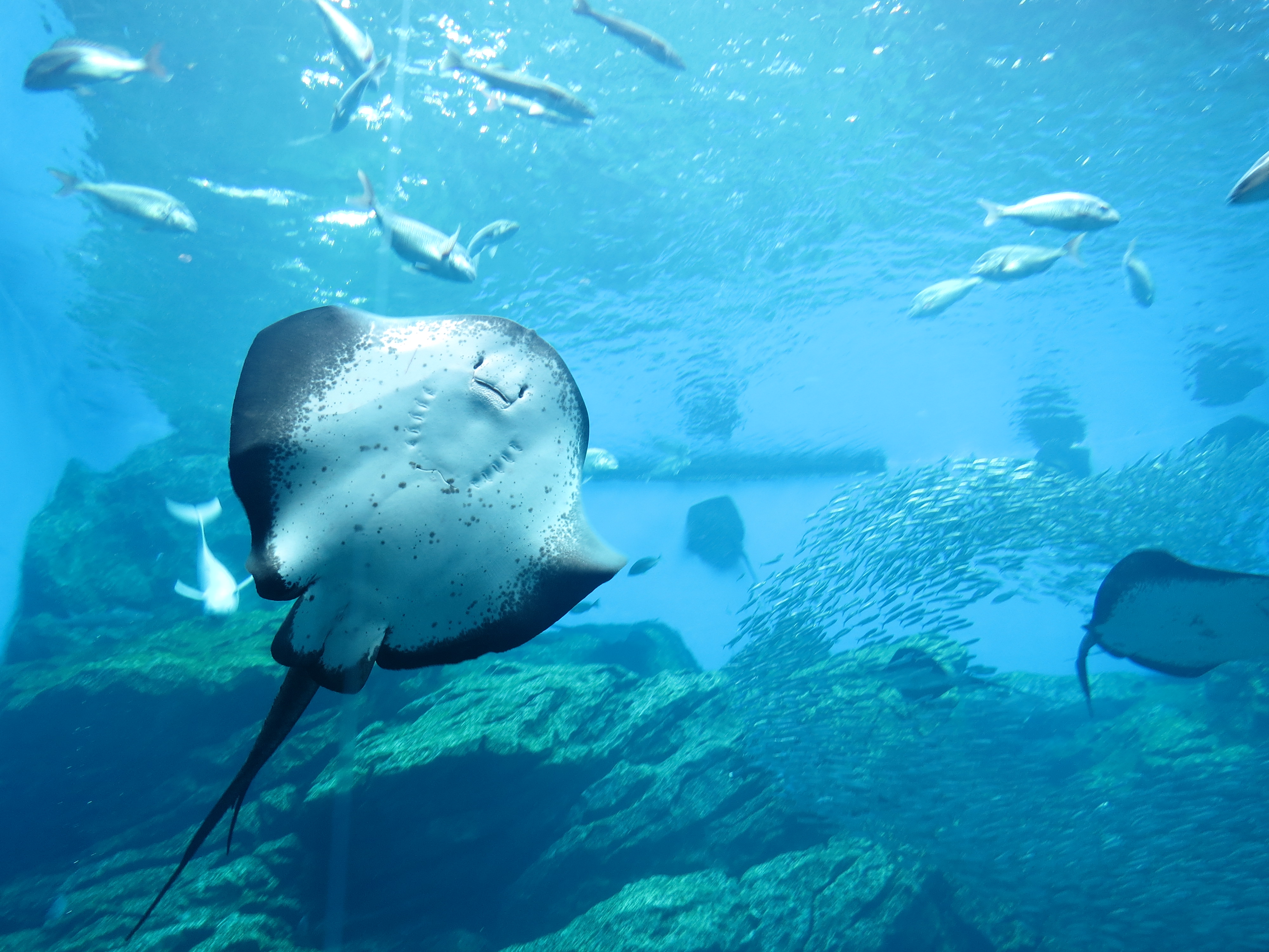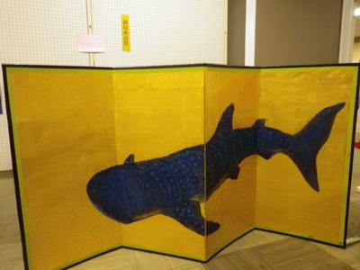 ゆったりと大きな姿で泳ぐ様子は今でも忘れられません。この作品は、修学旅行の思い出を屏風にしようという