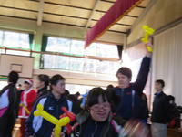何やらうれしくなるような服装をした生徒会の役員の皆さんから、一人ひとりが風船(バルーンアート)のプレゼントをもらったり、一緒に楽しいダンスをしたりしてすごしました。