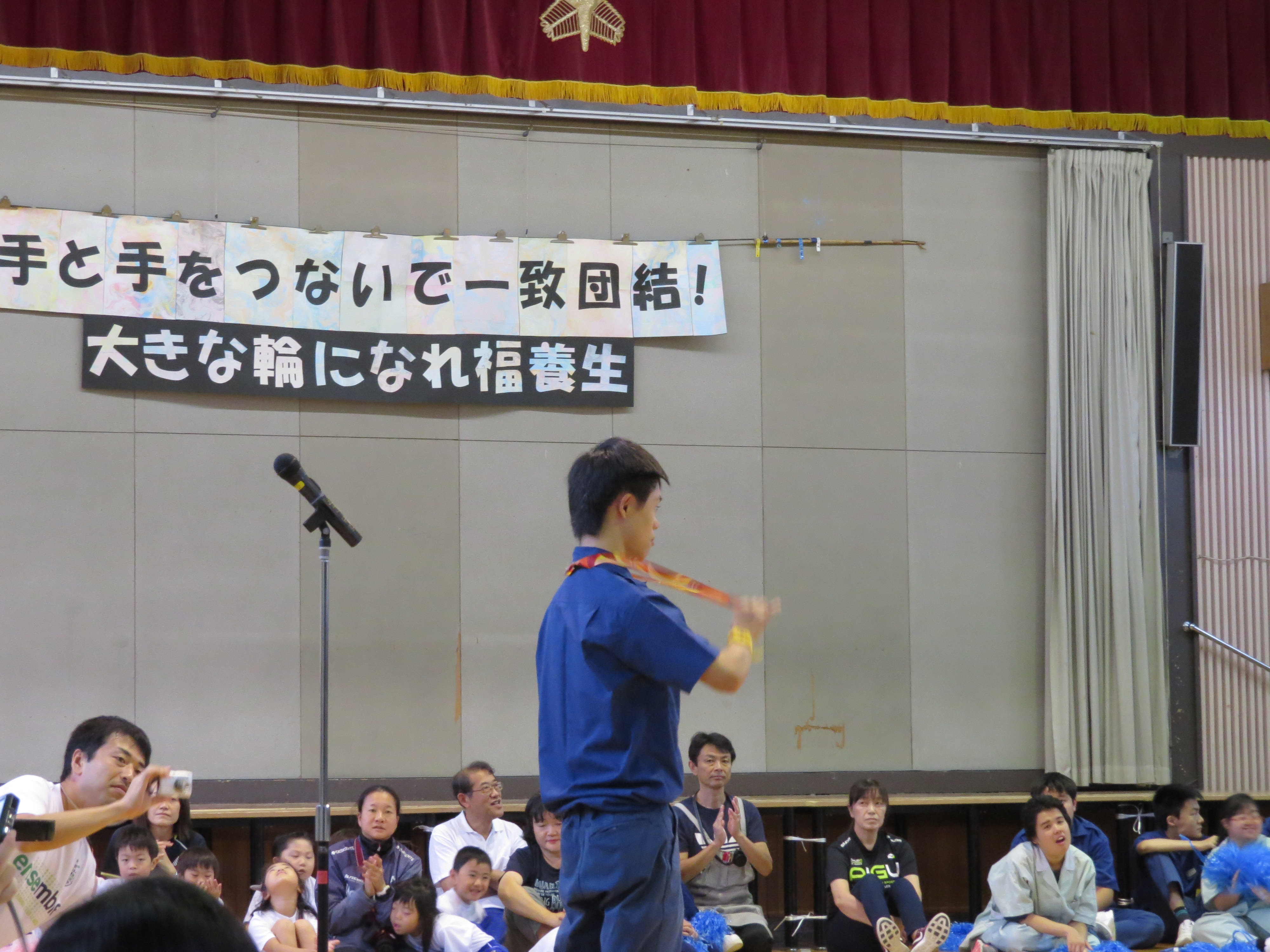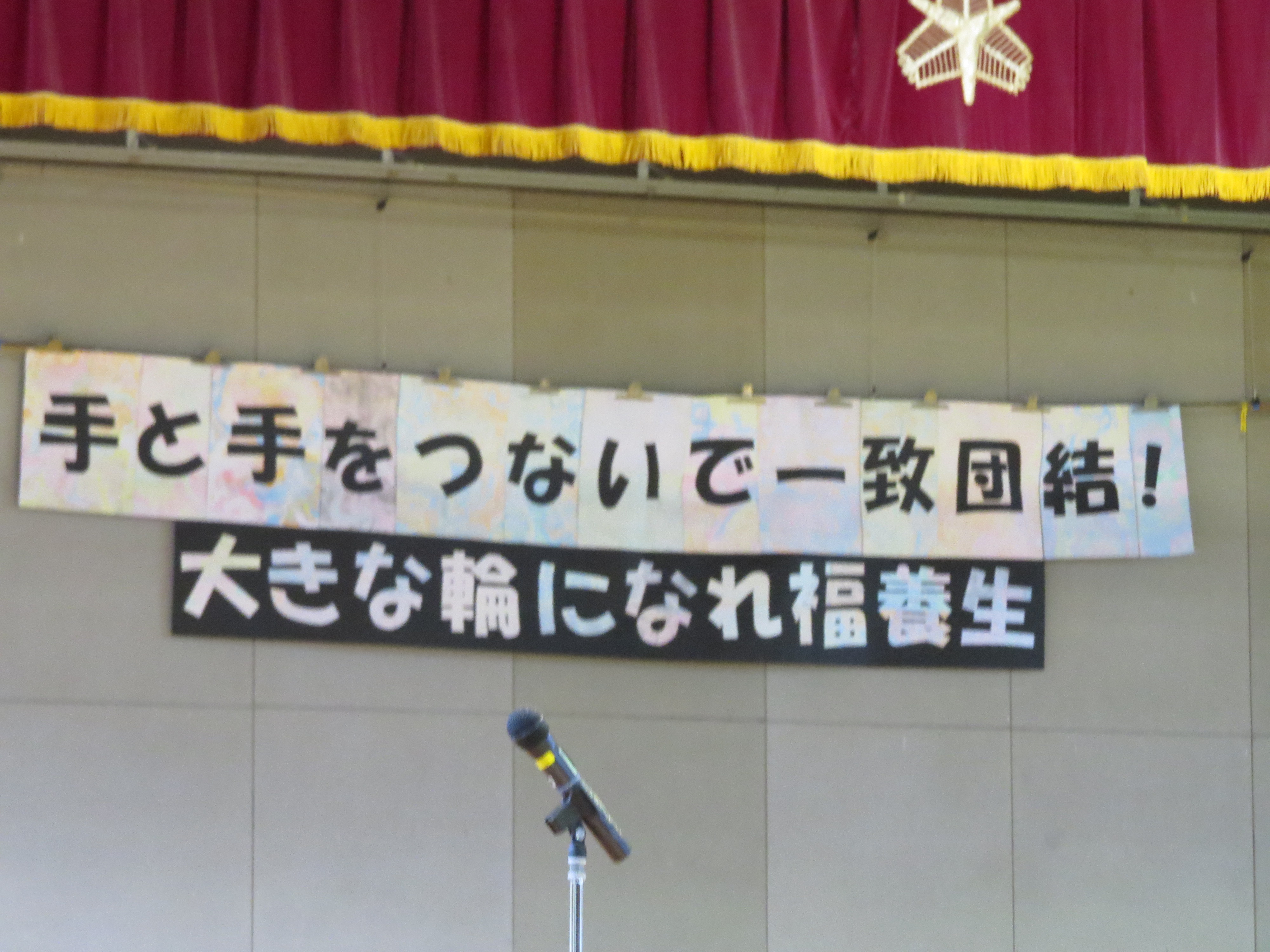 今日は全校集会がありました。初めに校長先生から、今年も後半分、福養祭をはじめ一人一人活躍の場がたくさん出てきます。みんなで力を合わせて、楽しい思い出をたくさん作りましょうというお話がありました。