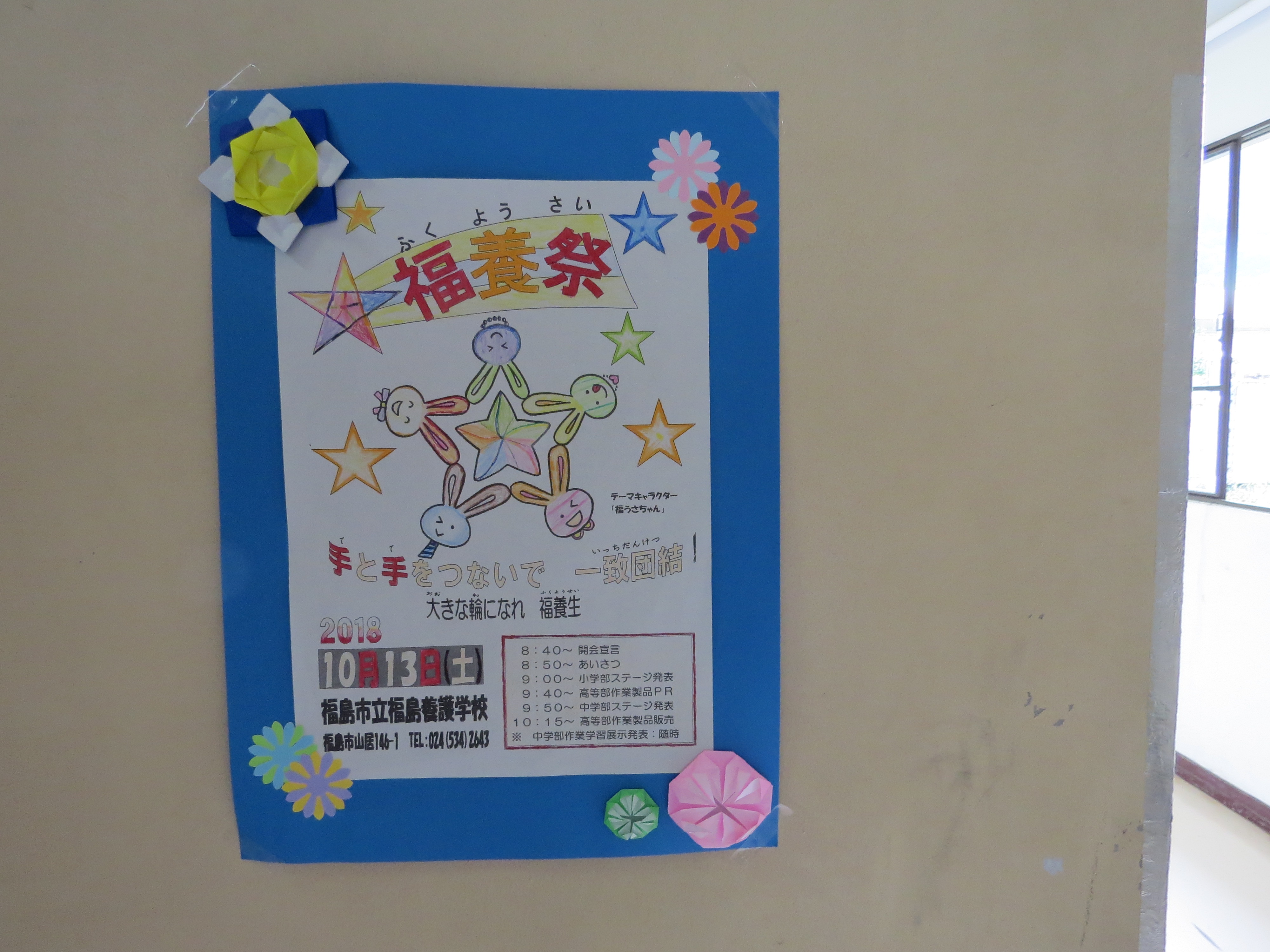 学校の中庭、また、校舎内の掲示板も、すっかり秋めいてきました。
