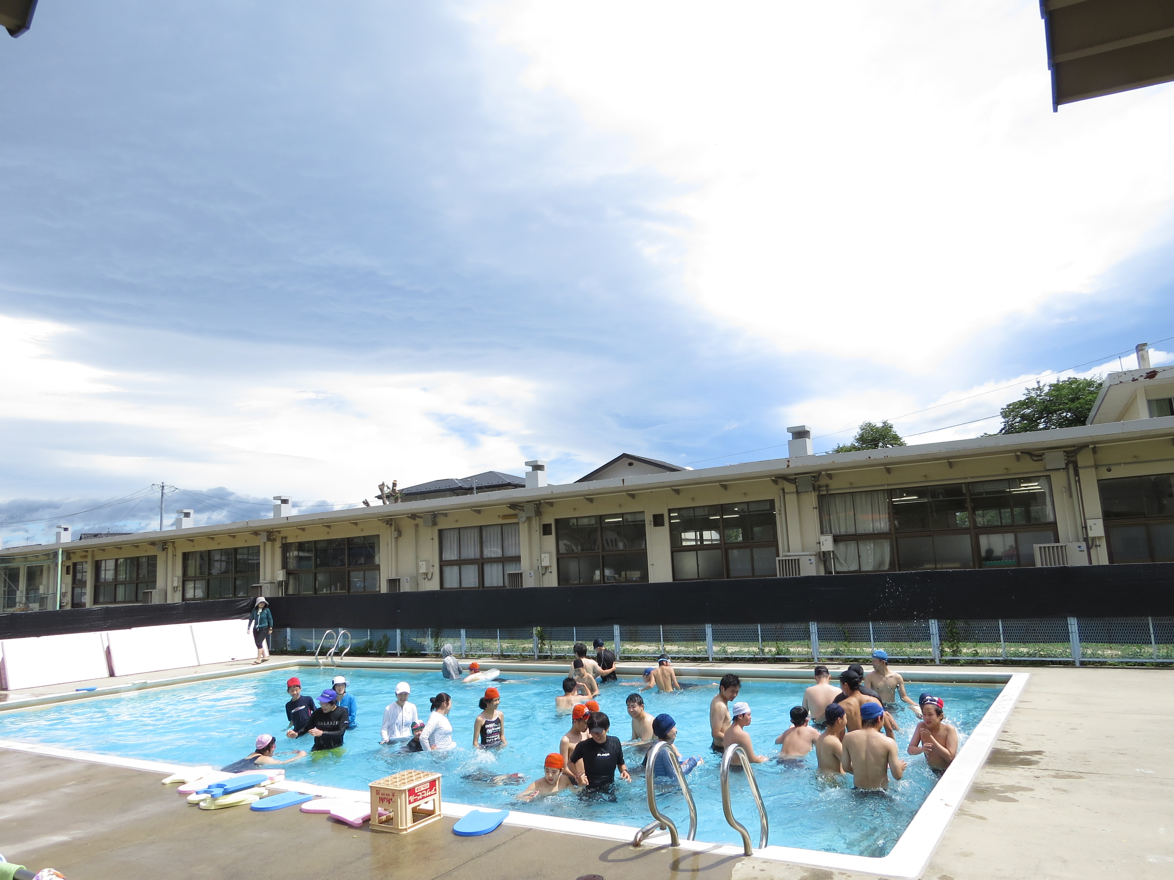 今日は、中学部が水泳の学習でプールに入っていました。雲が多い空でしたが、先生や友達と一緒にとても気持ちよさそうでした。