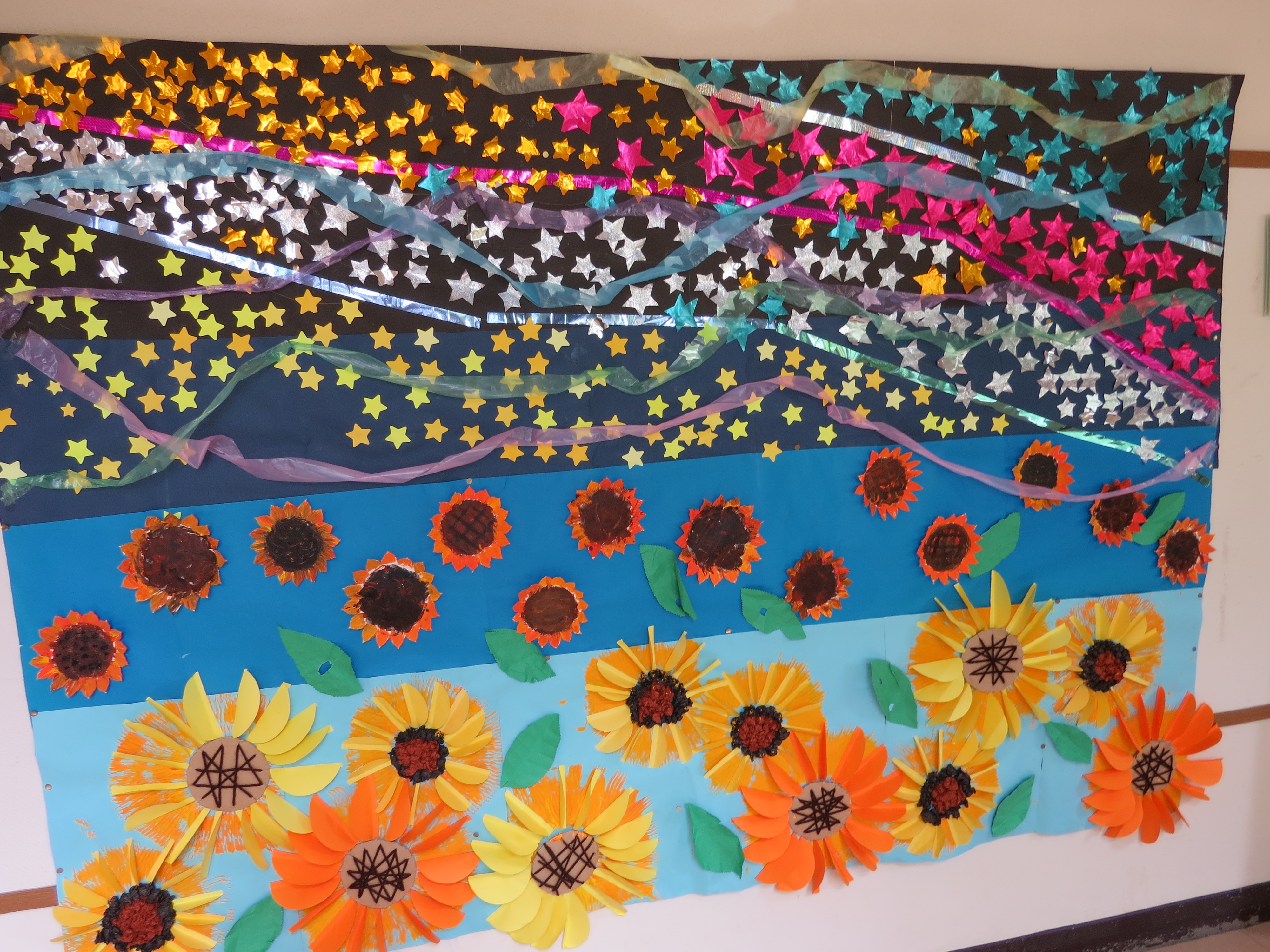 小学部の廊下には、たくさんのひまわりが咲いていました。今日も元気いっぱい楽しく活動できました。