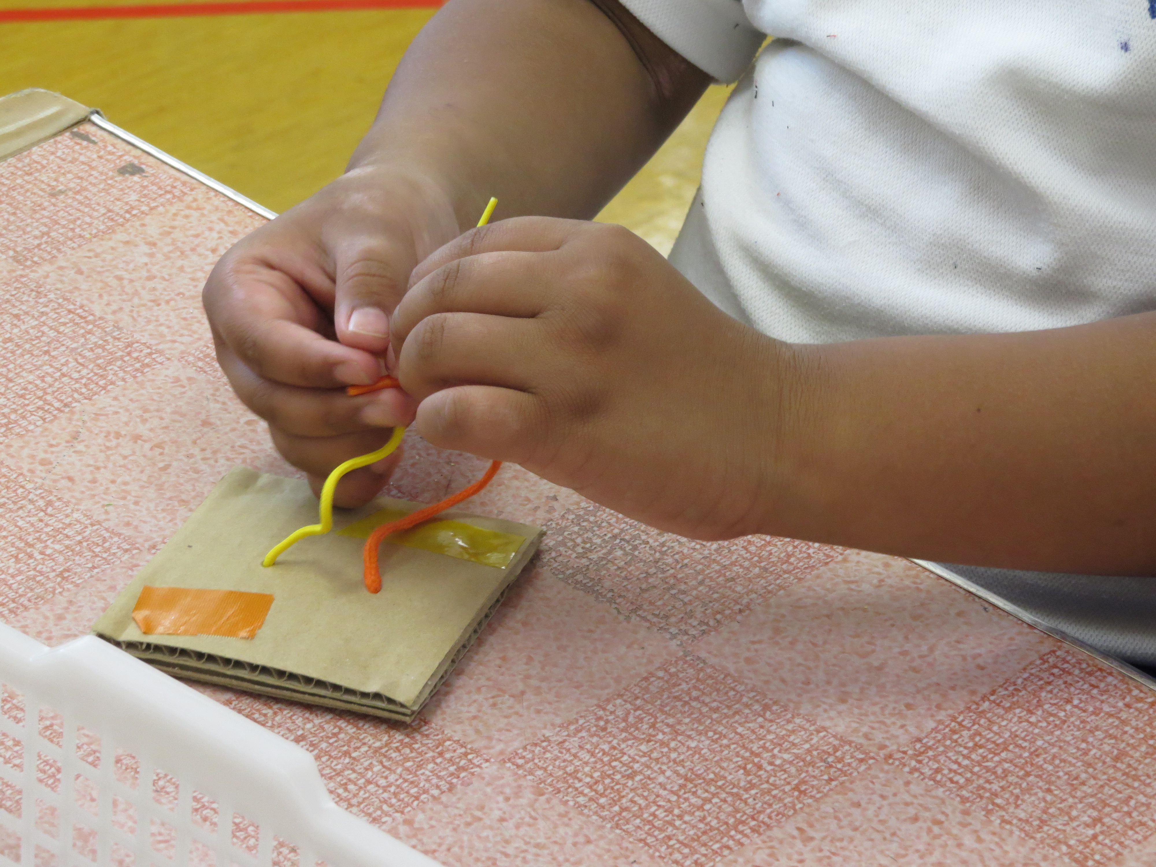小学部では、カタカナや数字の学習からひもの結び方の学習まで、担任の先生が児童の実態に応じて課題を工夫していました。どのともだちもみんな目をきらきらさせて取り組んでいました。